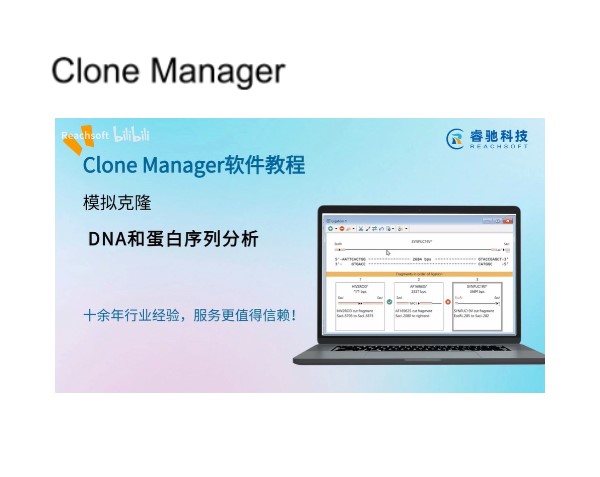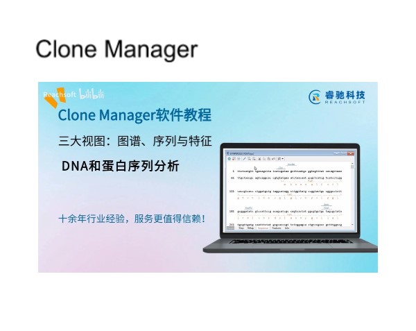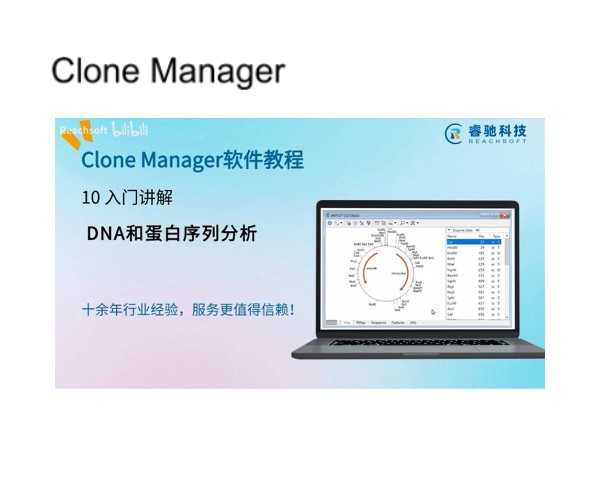 通过本视频:在图谱视图中,您将学习如何直观查看分子的环状与线性图谱,准确执行酶切位点并自定义基因特征的显示样式。在序列视图中,您将掌握如何自定义序列显示格式,并叠加显示酶切位点、翻译框等关键注释信息,还能直接进行编辑。在特征视图中,您将了解如何通过集中的列表高 效管理所有特征,并详细查看或编辑它们的属性。订购正版Clone Manager软件,欢迎联系北京睿驰科技。