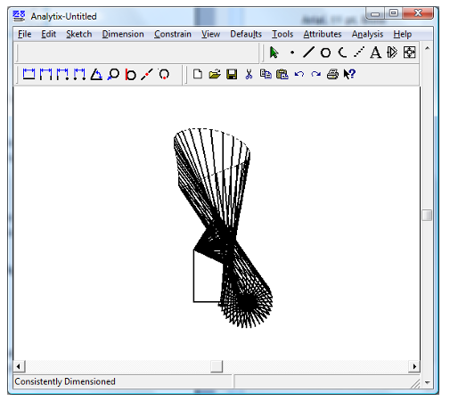 Analytix 显示当曲柄 AB 旋转一整圈时几何图形的运动包络线。请注意,线 BE 的包络线跟随点 E 的轨迹。